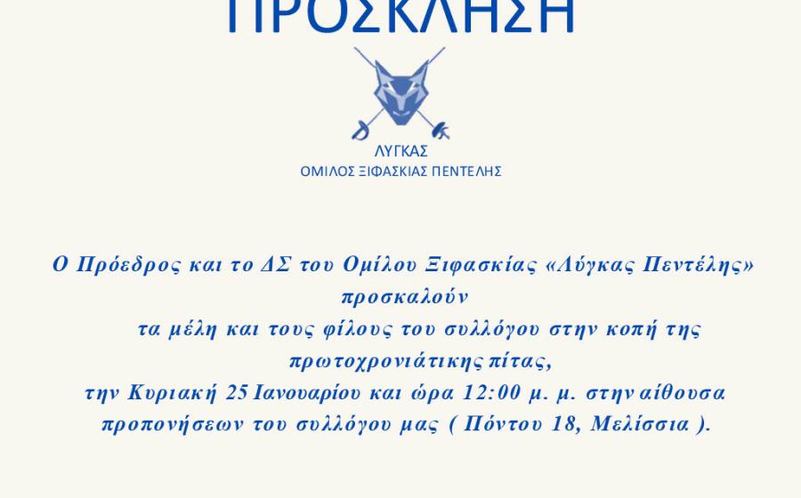 Home TIMING - DISTANCE - TEMPO Ένας όμιλος ξιφασκίας για όλες τις ηλικίες & φιλοδοξίες. Στον όμιλό μας θα μάθετε και θα αγαπήσετε το ολυμπιακό άθλημα της ξιφασκίας από επίλεκτη ομάδα προπονητών σε οικογενειακό περιβάλλον. Όλοι για τον έναν και ο ένας για όλους. Πρόγραμμα Προπονήσεων Πρόγραμμα Αγώνων γνωρισε το συλλογο η ομαδα μας Τα νέα του Λύγκα Σύλλογος | 29 Ιαν 26 Ετήσια Κοπή Πρωτοχρονιάτικης Πίτας του Συλλόγου Ξιφασκίας «Λύγκας» Πεντέλης Σε ιδιαίτερα θερμό και εορταστικό κλίμα πραγματοποιήθηκε η ετήσια κοπή της πρωτοχρονιάτικης πίτας του Συλλόγου Ξιφασκίας «Λύγκας» Πεντέλης Εφήβων - Νεανίδων Κ17, Παμπαίδων - Παγκορασίδων Κ13 | 19 Ιαν 26 Συμμετοχή του Ομίλου Ξιφασκίας "Λύγκας" Πεντέλης στο Πανελλήνιο Κύπελλο Ξίφους Μονομαχίας στην Πρέβεζα Το Σαββατοκύριακο 17–18 Ιανουαρίου πραγματοποιήθηκε στην Πρέβεζα το Πανελλήνιο Κύπελλο Ξίφους Μονομαχίας, με τον Λύγκα να συμμετέχει με πολυπληθή α Σύλλογος | 09 Ιαν 26 ΠΡΟΣΚΛΗΣΗ ΓΙΑ ΤΗΝ ΚΟΠΗ ΠΙΤΑΣ 2026 Σύλλογος | 23 Δεκ 25 Ολοκλήρωση Βιωματικού Τριημέρου Διαχείρισης Αγωνιστικού Άγχους από το Σύλλογο Ξιφασκίας «Λύγκας Πεντέλης» Με μεγάλη επιτυχία και ενθουσιασμό ολοκληρώθηκε το Βιωματικό Τριήμερο Διαχείρισης Αγωνιστικού Άγχους που διοργάνωσε ο Σύλλογος Ξιφασκίας«Λύγκας Πεν Ανδρών - Γυναικών, Κ14 | 17 Δεκ 25 Συμμετοχή του Ομίλου Ξιφασκίας «Λύγκας Πεντέλης» στο European Circuit Ξίφους Μονομαχίας (U14 & U23) Στις 13–14 Δεκεμβρίου στη Θεσσαλονίκη πραγματοποιήθηκε αγώνας του European Circuit Ξίφους Μονομαχίας, με τη συμμετοχή αθλητών από πολλές ευρωπαϊκές